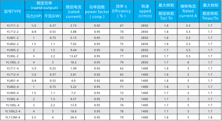 YL系列單相電機(jī)具有噪聲小,溫升低的特點(diǎn)防護(hù)等級(jí)IP54,F級(jí)絕緣B級(jí)溫升考核:安裝尺寸合IEC 標(biāo)準(zhǔn):