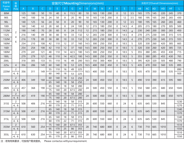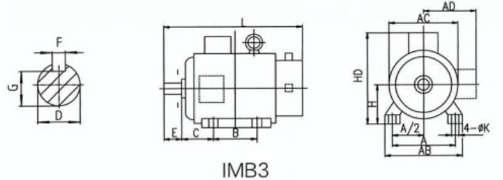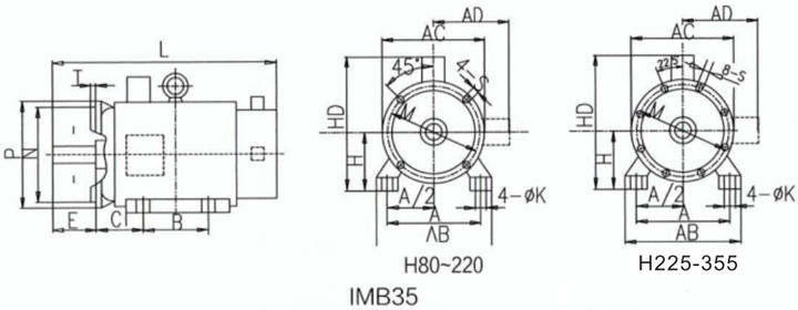 YVF2系列變頻調(diào)速三相異步電動機安裝及外形尺寸圖